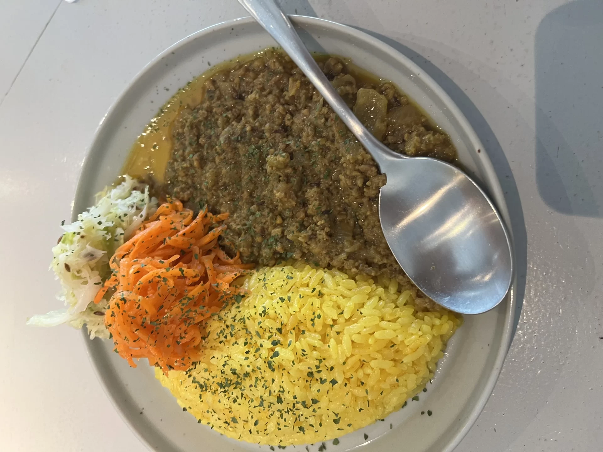 今日は住んでいるところの近くに見つけた。Cenchallors Cafeに行ってきました!メインはカレーライスで、今日はキーマカレーを頼んでみました。